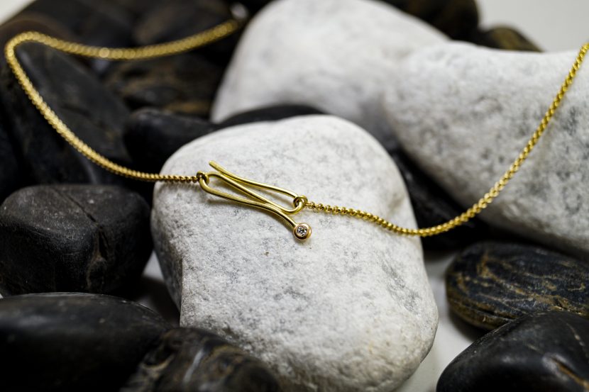Erbskette als Halkette gearbeitet in 18 Karat Gelbgold mit einem Verschluss in 18 Karat. Als kleines Special gibt´s einen Diamanten im Brilliantschliff am Verschlusshaken.